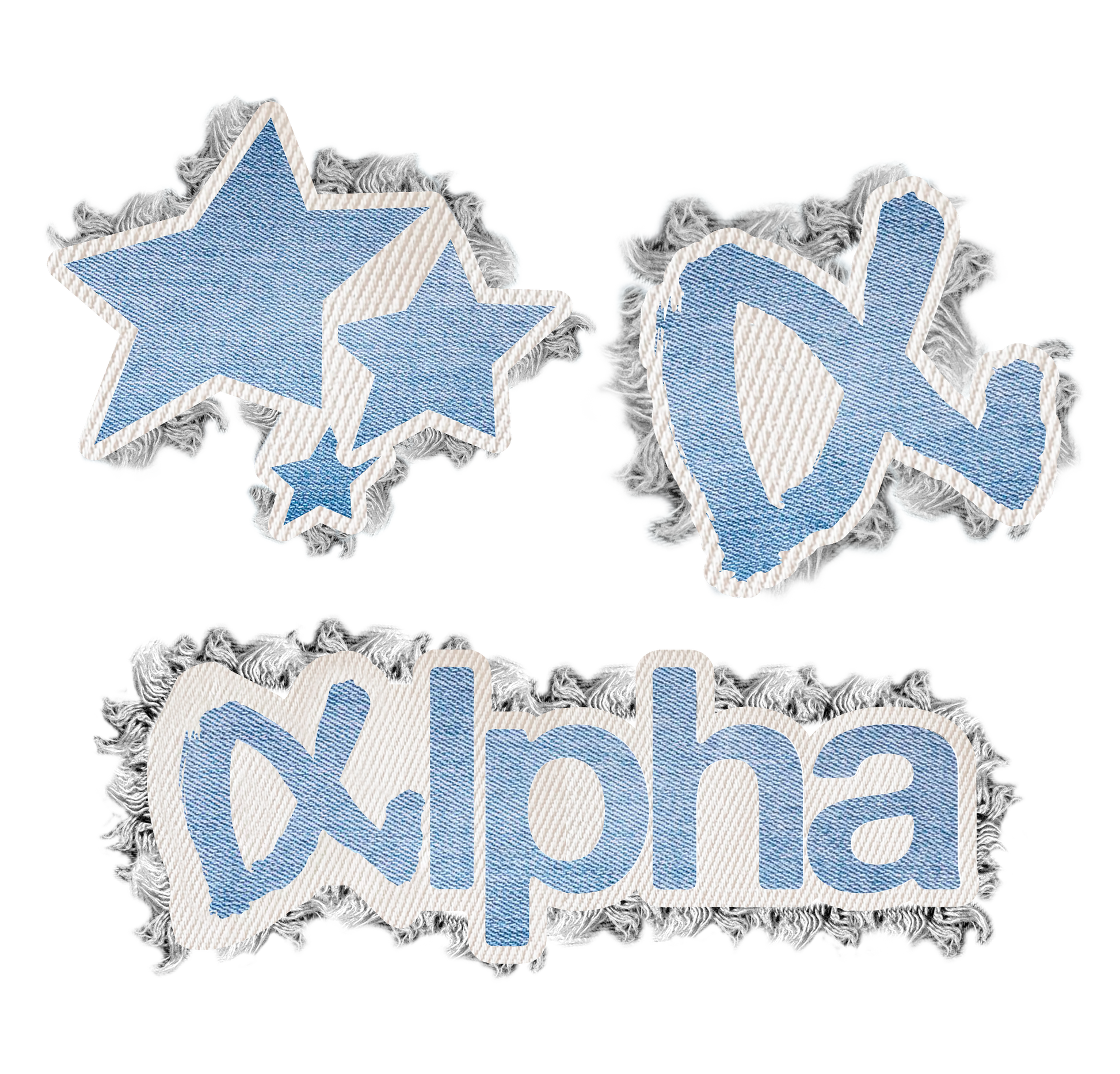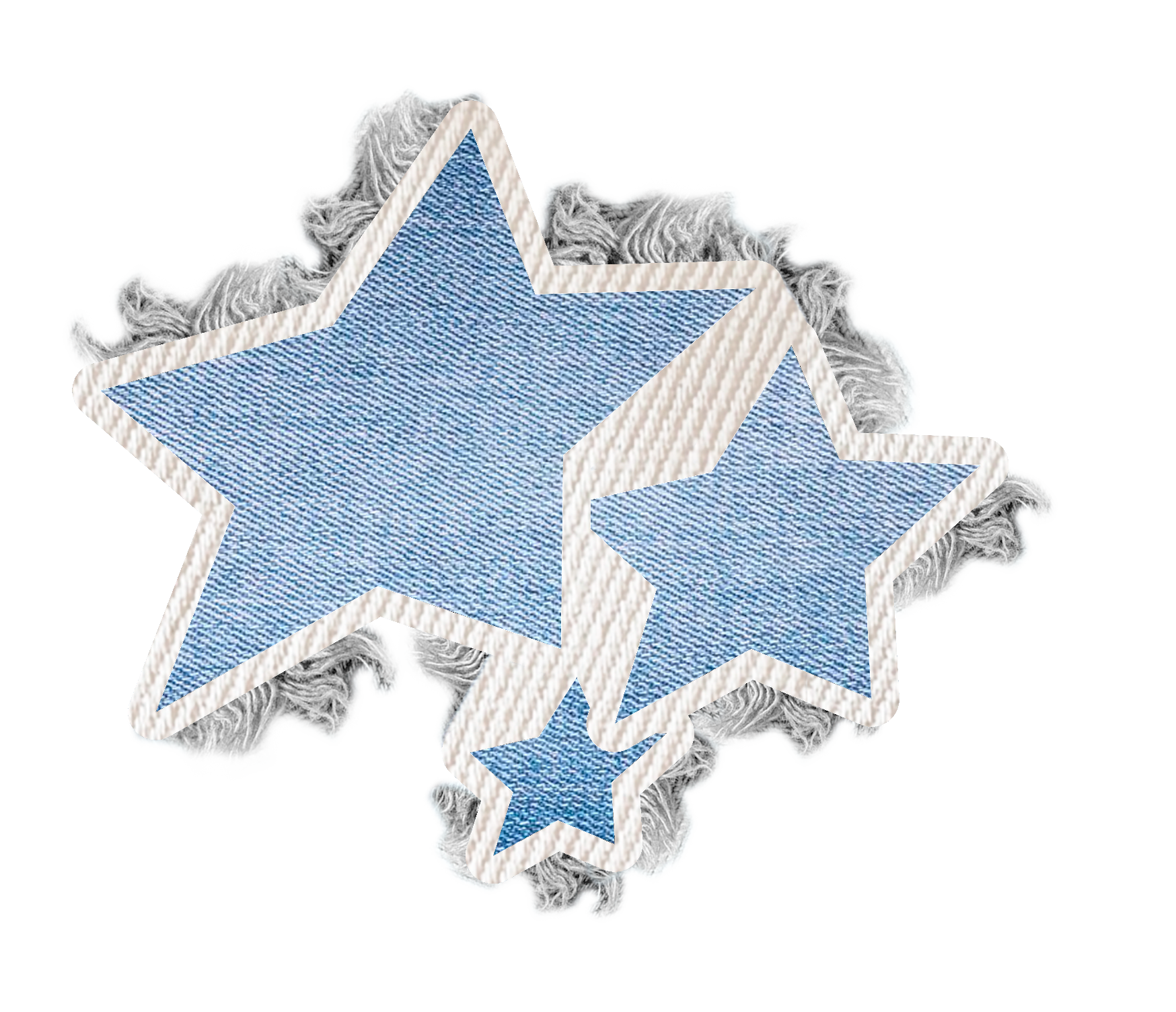 Set de 3 parches exclusivos denim con bordes deshilachados.